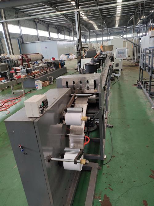 丁基膠自粘片材擠出機(jī)_丁基膠自粘片材擠出機(jī)_佳德雙碗強(qiáng)制喂料機(jī)/JDL-150單螺桿丁基膠片生產(chǎn)線一、系統(tǒng)機(jī)組技術(shù)參數(shù)Ⅰ、機(jī)器顏色:主機(jī)為:公司標(biāo)色;電柜為:電腦色;防護(hù)罩:黃色Ⅱ、擠出工藝:雙碗強(qiáng)制喂料機(jī)——JDL-150單螺桿擠出機(jī)-----模具接口------丁基膠膠專用模具------二棍覆膜輥----上下覆膜裝置----5米橡膠輸送帶----雙棍壓花裝置------切刀系統(tǒng)-----輸送帶-----主機(jī)采用:PLC控制Ⅲ、加工物料:丁基膠片材要 求:丁基膠片尺寸:寬:500mm,最厚1-3mm 正負(fù):0.15mm產(chǎn) 能:500~600公斤/小時(shí)注意事項(xiàng):取決于客戶的配方、工藝、生產(chǎn)條件二. 技術(shù)配置(一)雙碗強(qiáng)制喂料機(jī)1)電機(jī)功率:11kw,采用“三晶或羅賓漢”變頻調(diào)速器。喂料螺桿:雙螺桿強(qiáng)制下料,氮化鍍鉻處理,丁基膠自粘片材擠出表面光潔度高。喂料體:內(nèi)表面拋光、鍍硬鉻處理,光潔耐磨。2)喂料斗:內(nèi)表面拋光、鍍硬鉻處理,光潔耐磨;采用鎖扣式安裝防護(hù)罩,要求便于更換和維修保養(yǎng)。(二)JDL-150擠出機(jī)1、減速箱:采用ZLYJ系列專業(yè)為單螺桿橡塑擠出機(jī)配套設(shè)計(jì)的高精度硬齒面帶推力座的齒輪傳動(dòng)裝置,設(shè)計(jì)采用JB/T8853-2001《圓柱齒輪減速機(jī)》規(guī)定的各項(xiàng)技術(shù)規(guī)范,輸出軸采用高強(qiáng)度42CrMo,其他齒輪和軸類零件采用高強(qiáng)度20CrMnTi材料;齒輪經(jīng)滲碳、淬火、磨齒工藝加工,齒輪精度高、